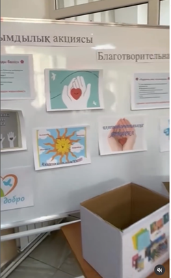 Акция барысында оқушыларға ақпарат беріліп, олар белсенді түрде қатысты. Қайырымдылық көмегі заттай қабылданды (дәптер, қаламсап және басқа да оқу құралдары).