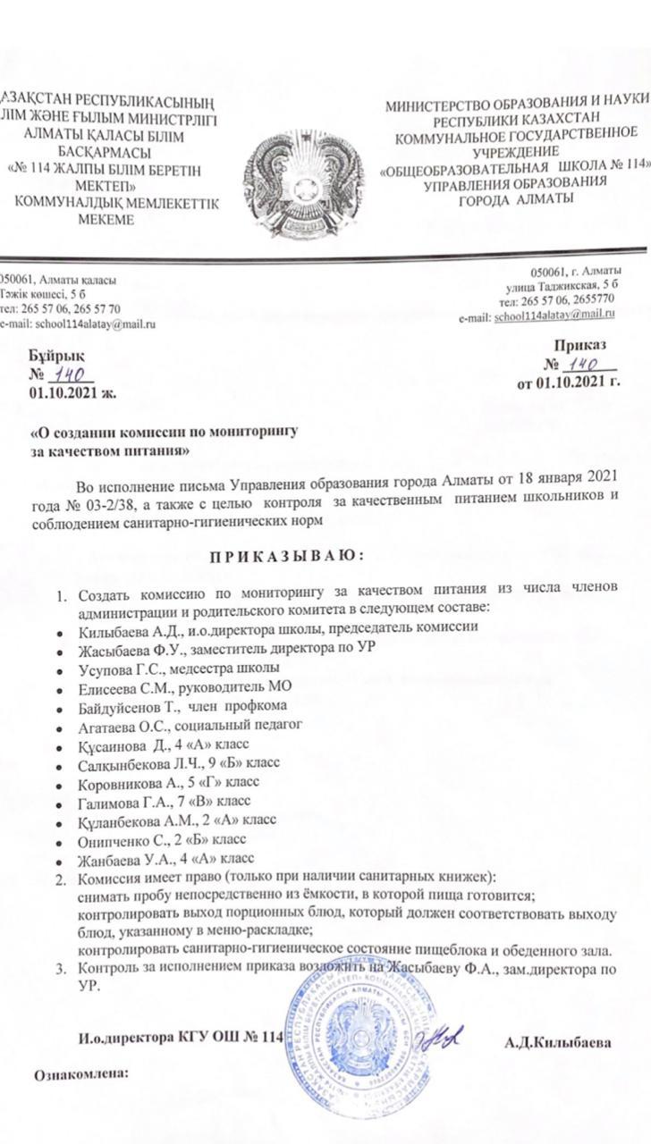 01 октябрь 2021 0 1 2 3 4 5 О создании комиссии по мониторингу за качеством питания [attachment=209] Осы беттің QR-коды:QR-код этой страницы: