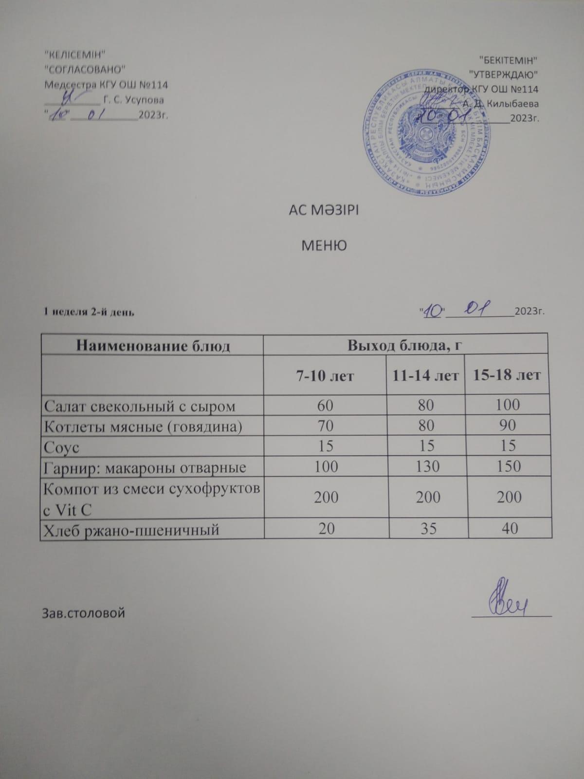 Ас мәзірі 2023-2024ж