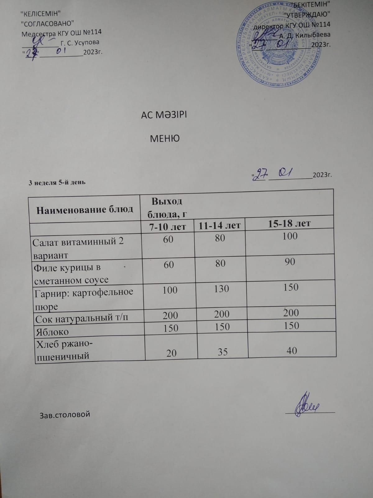 Ас мәзірі 2023-2024ж