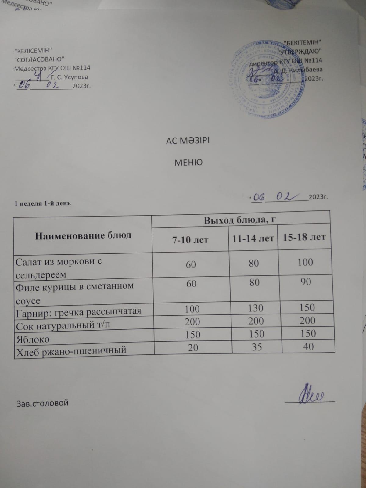 Ас мәзірі 2023-2024ж