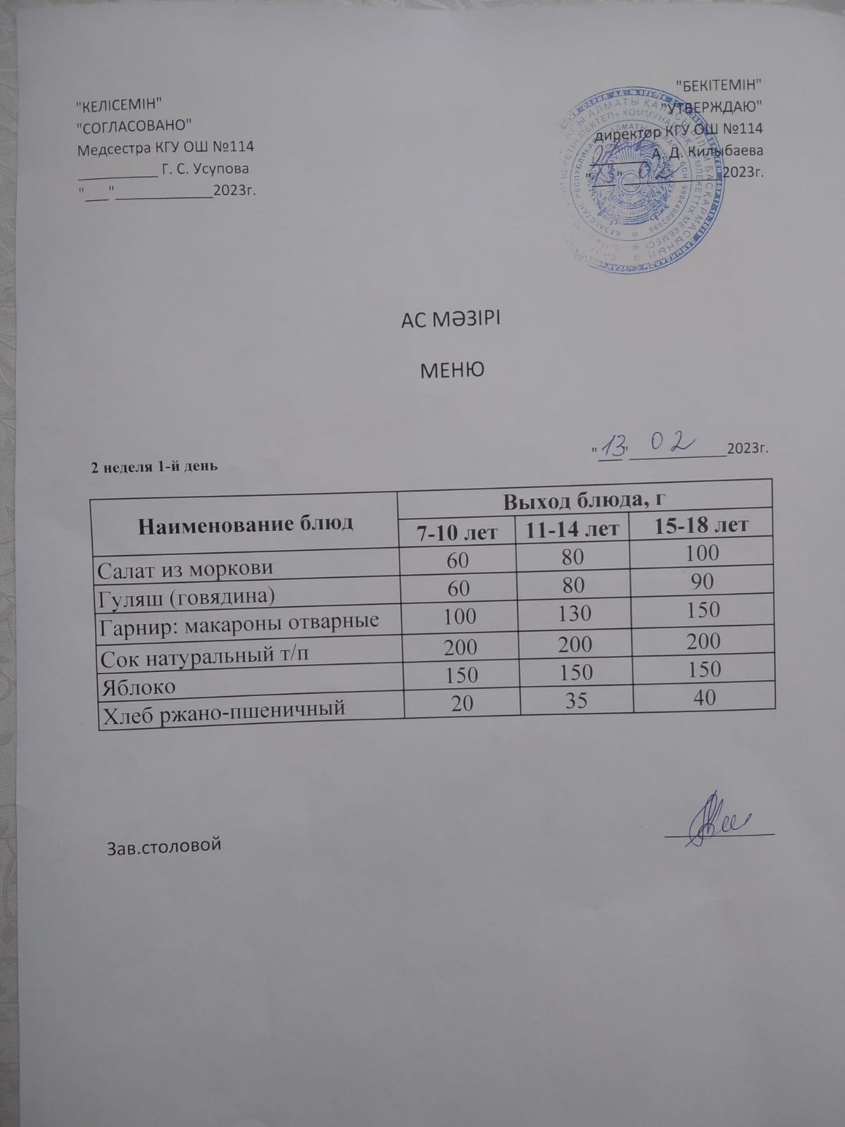Тамақтану бойынша келісім шарт- 2023-2024ж