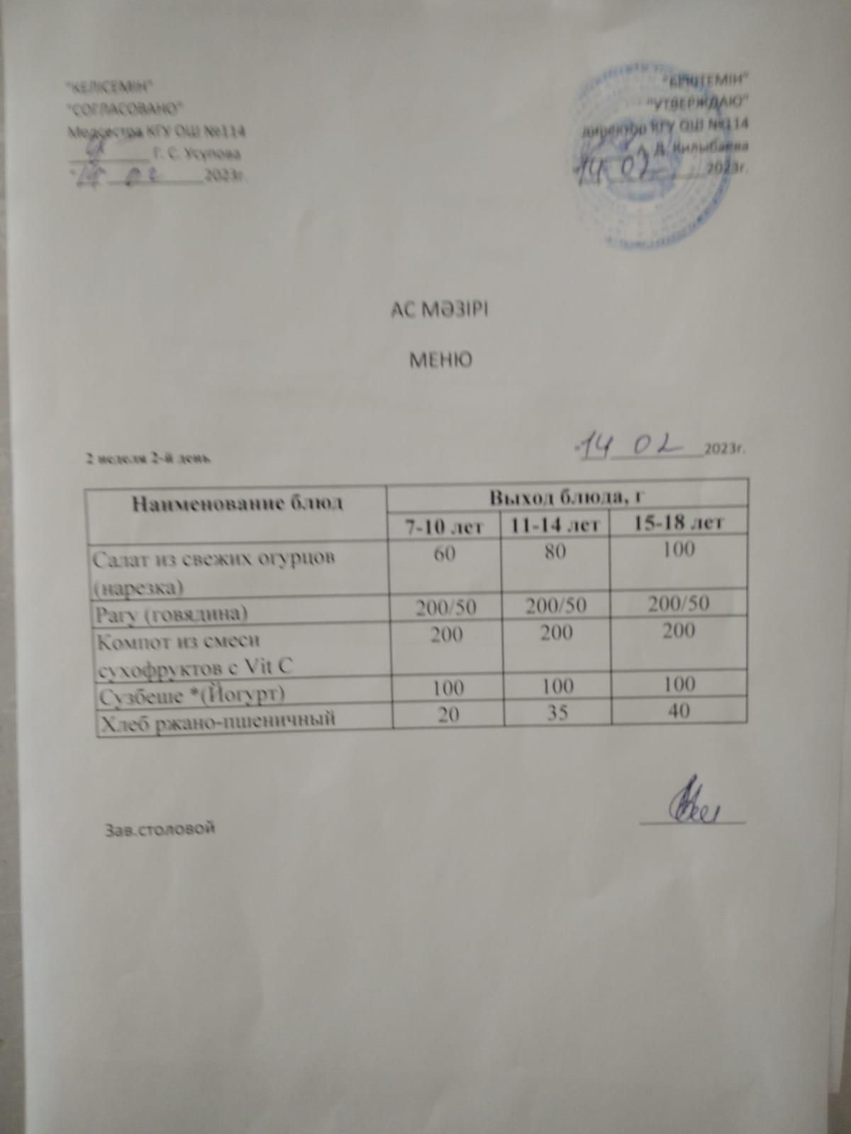 Тамақтандырудың сапалық мониторингі 2023жыл