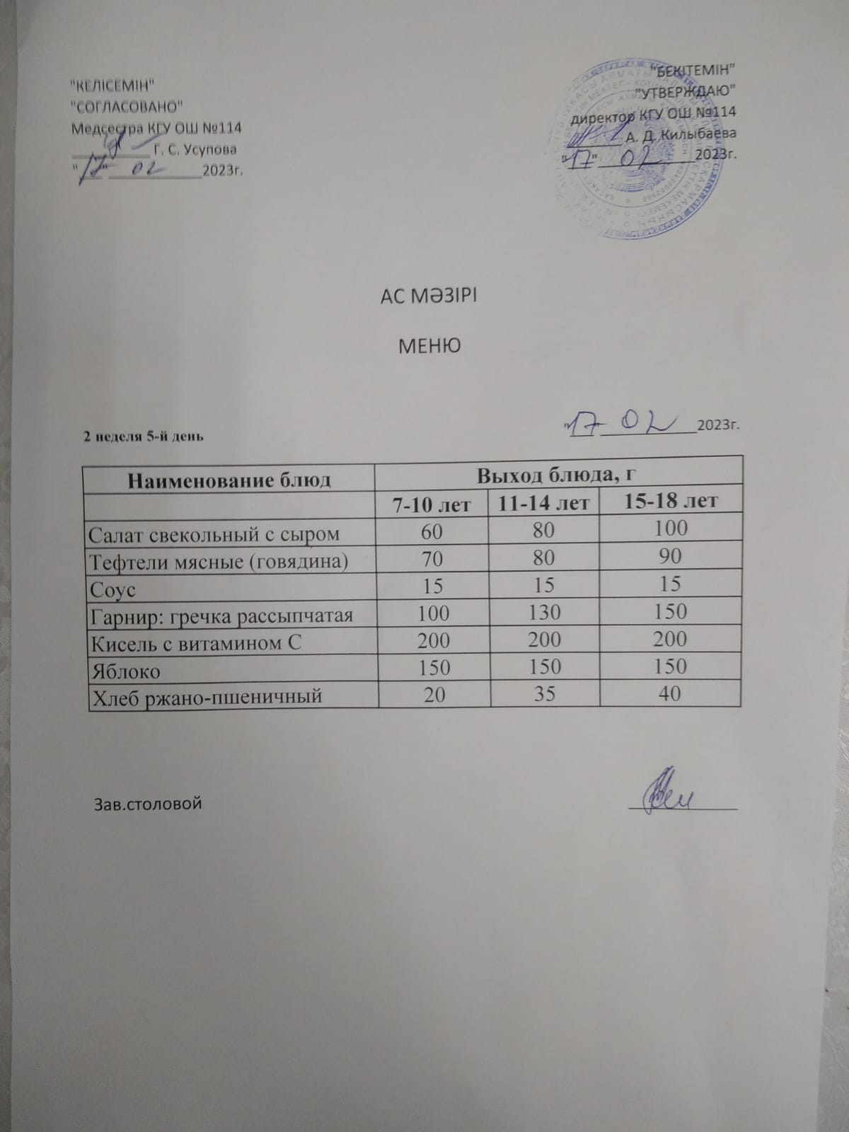 Тамақтану бойынша келісім шарт- 2023-2024ж