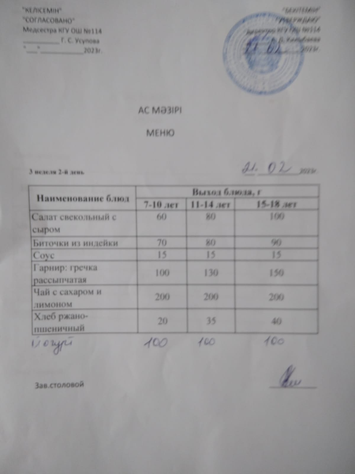 Тамақтандырудың сапалық мониторингі 2023жыл