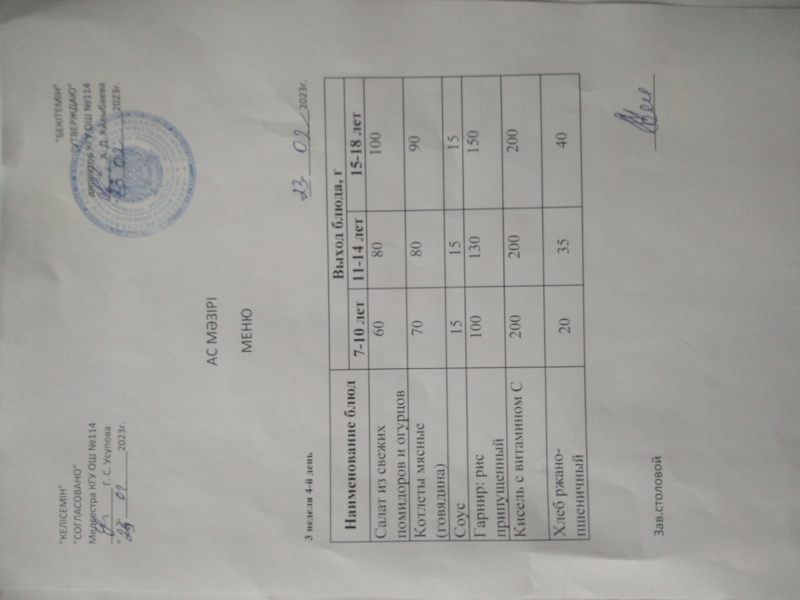 Ас мәзірі 2023-2024ж