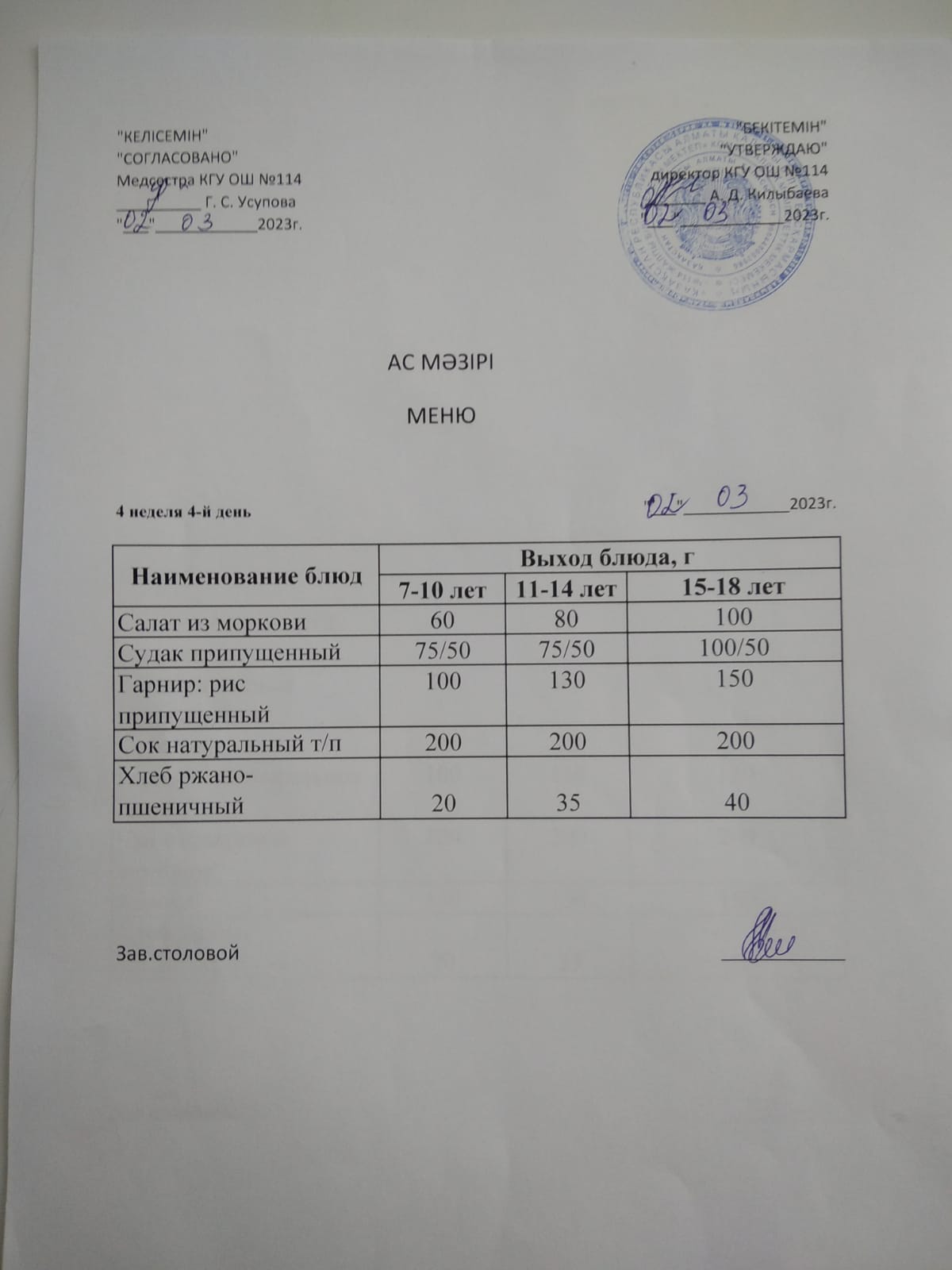 Тамақтану бойынша келісім шарт- 2023-2024ж