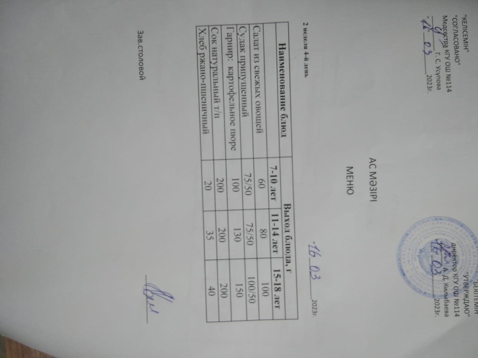 Ас мәзірі 2023-2024ж