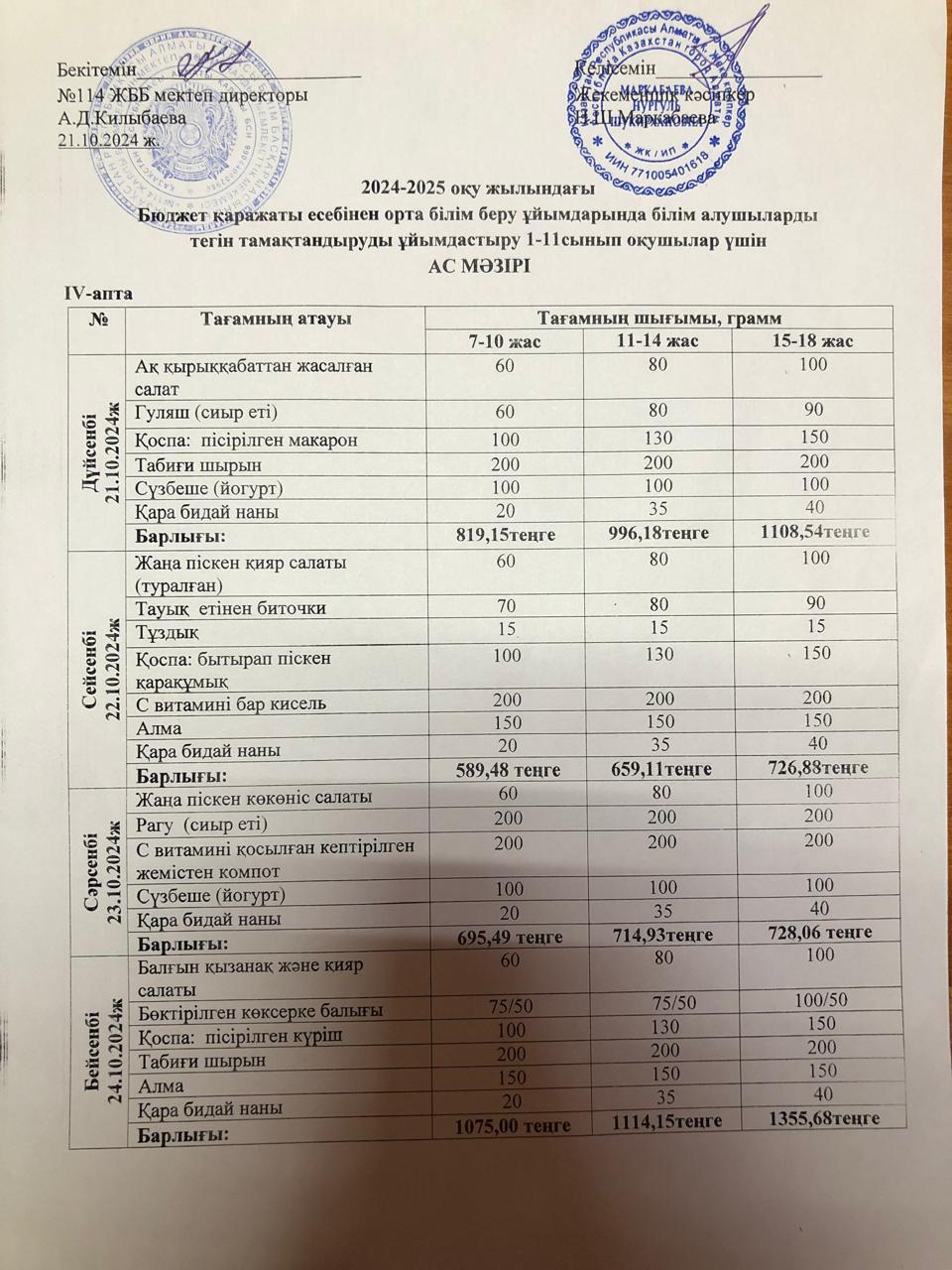 Тамақтануды ұйымдастыру бойынша конкурсттық құжаттама 2024ж