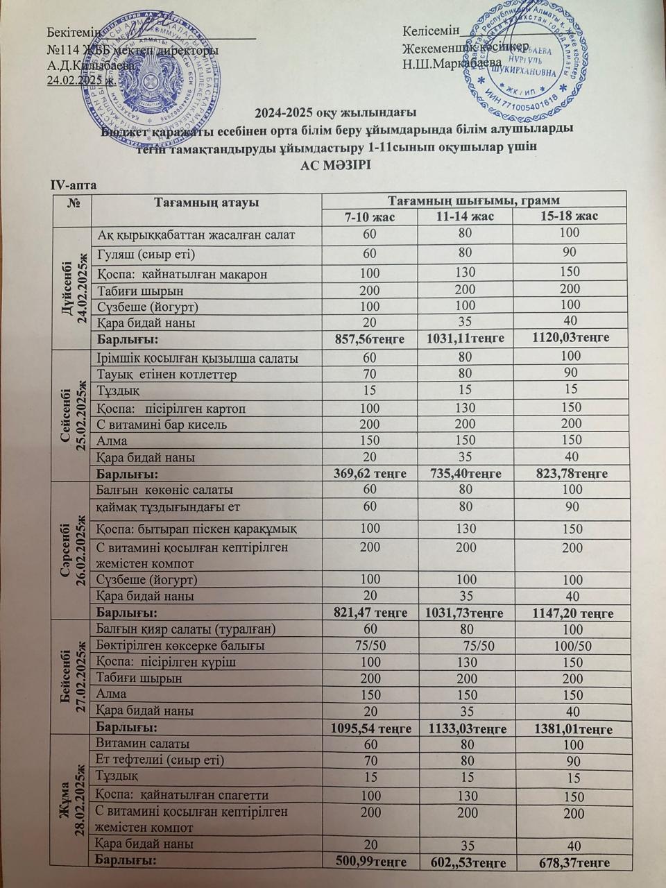 Ас мәзірі 17.02 - 21.02.2025 ж