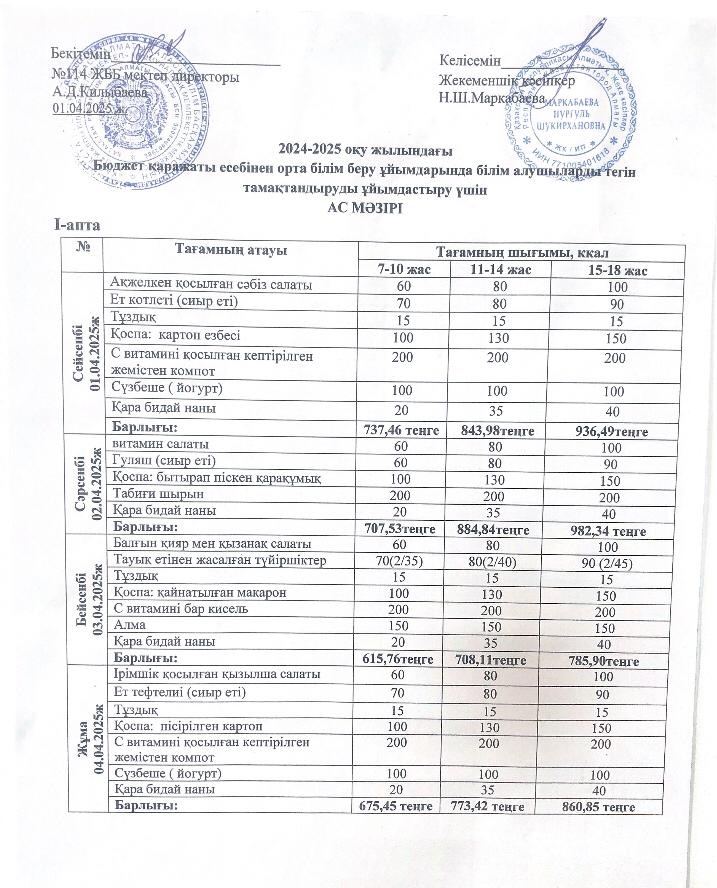 Ас мәзірі 01.04 - 04.04.2025 ж