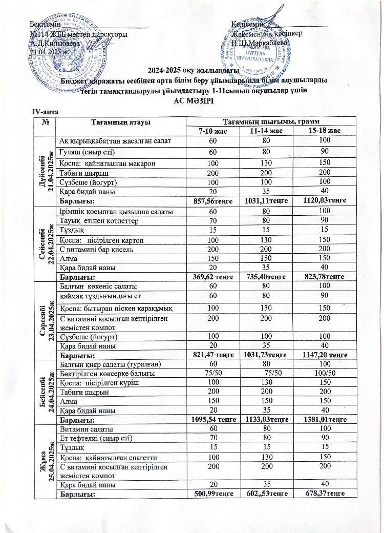 Ас мәзірі 14.04-18.04.2025ж