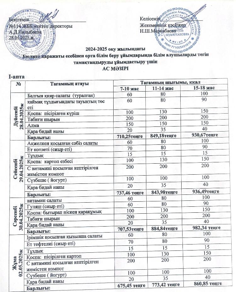 Ас мәзірі 17.03 - 20.03.2025 ж