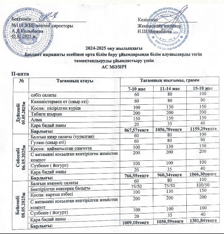 Ас мәзірі 17.03 - 20.03.2025 ж