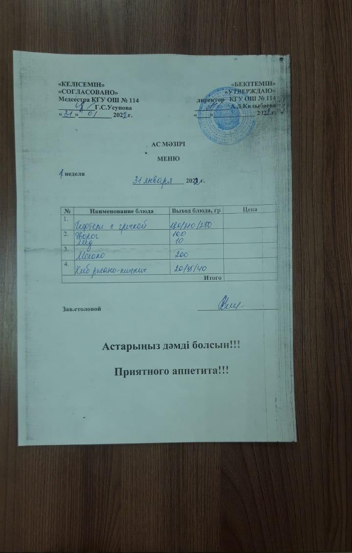 Тамақтандыруды ұйымдастыру - 2021ж.