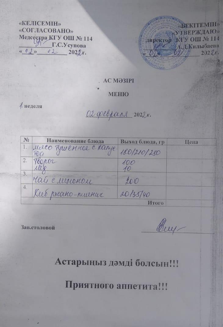 » Ежедневное меню 02.02.2022г