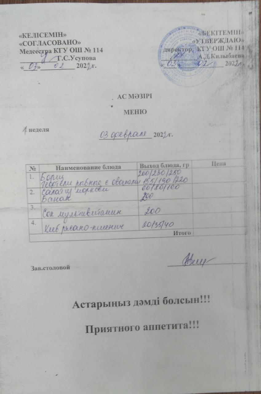 Тамақтандыру бойынша келісім шарт 2022ж.