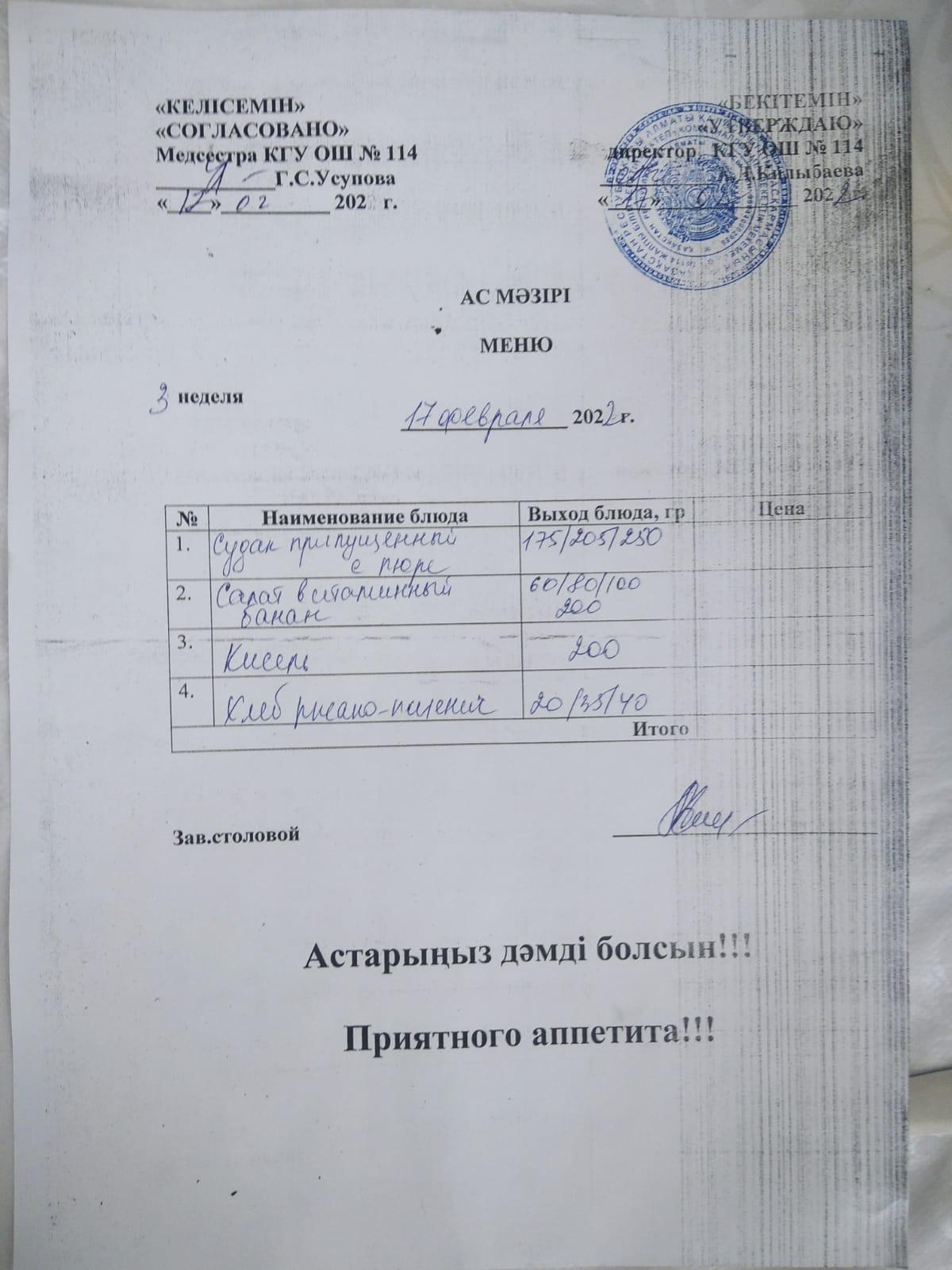 Тамақтандыруды ұйымдастыру - 2021ж.