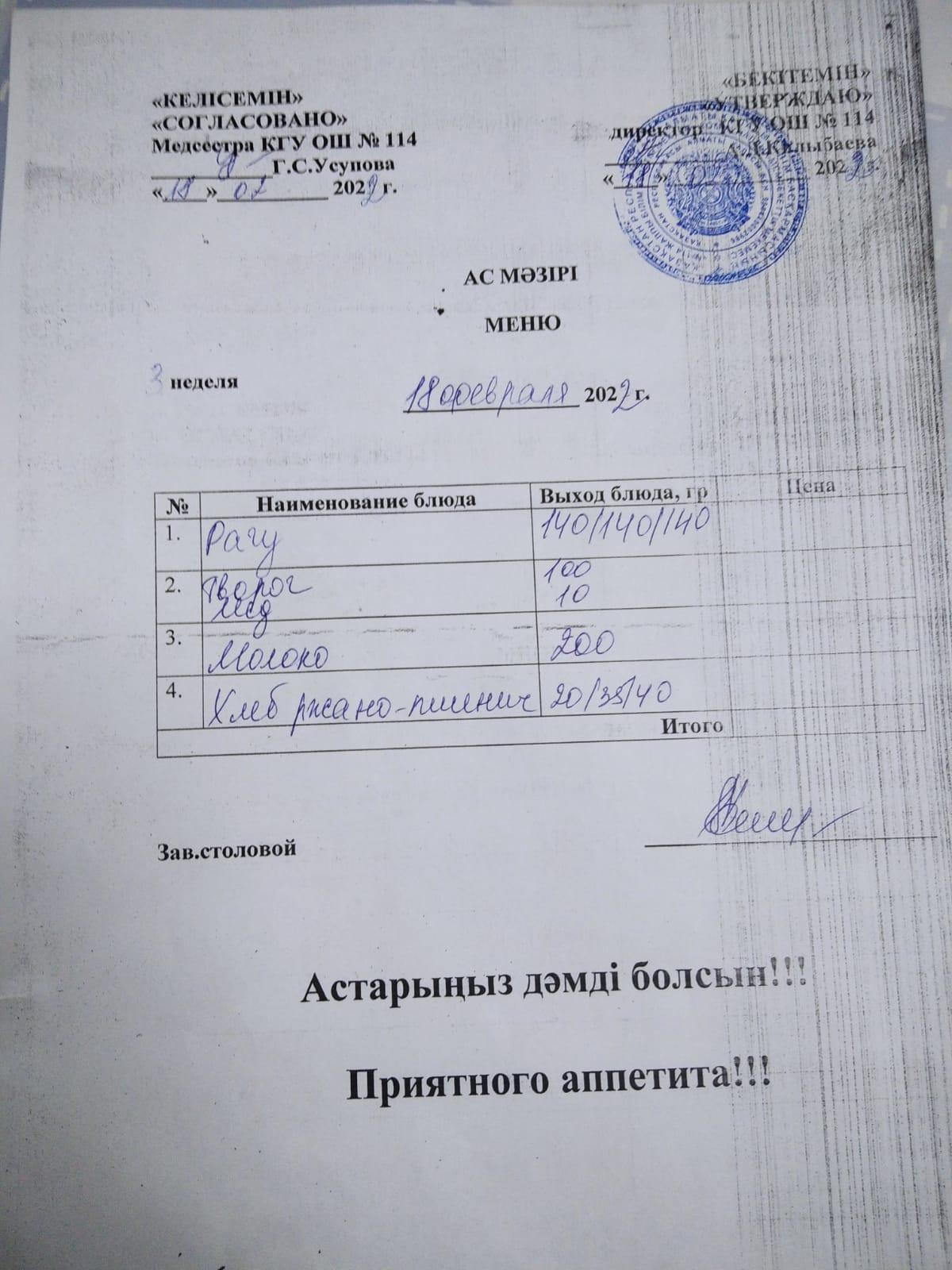 Тамақтандыруды ұйымдастыру - 2021ж.