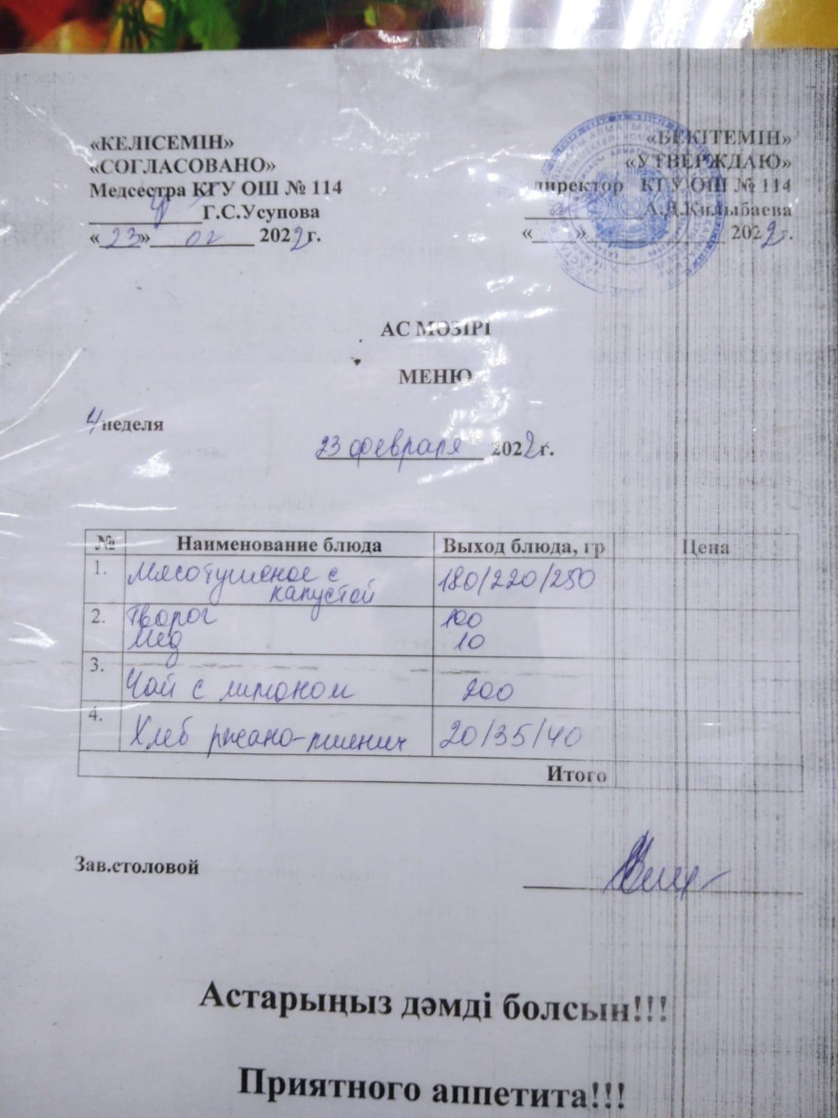 Тамақтандырудың сапалық мониторингі 2023жыл