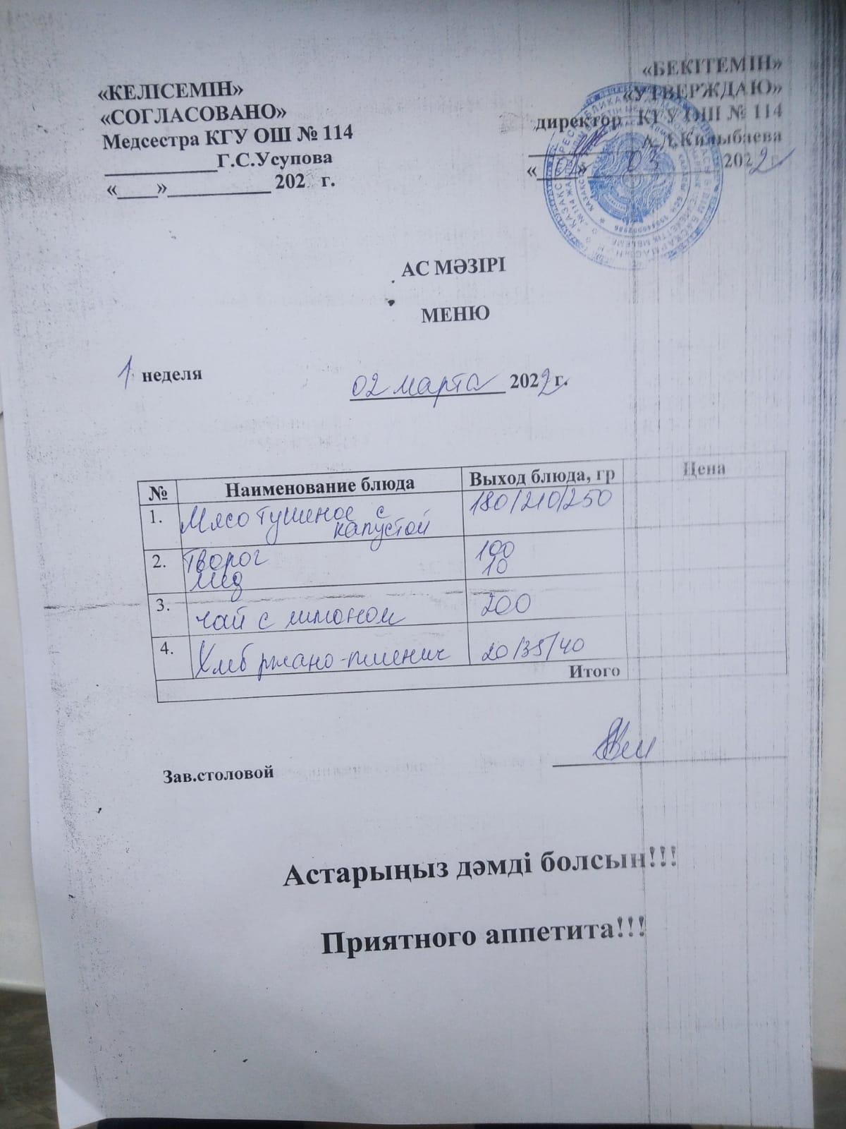 Тамақтандыру бойынша келісім шарт 2022ж.