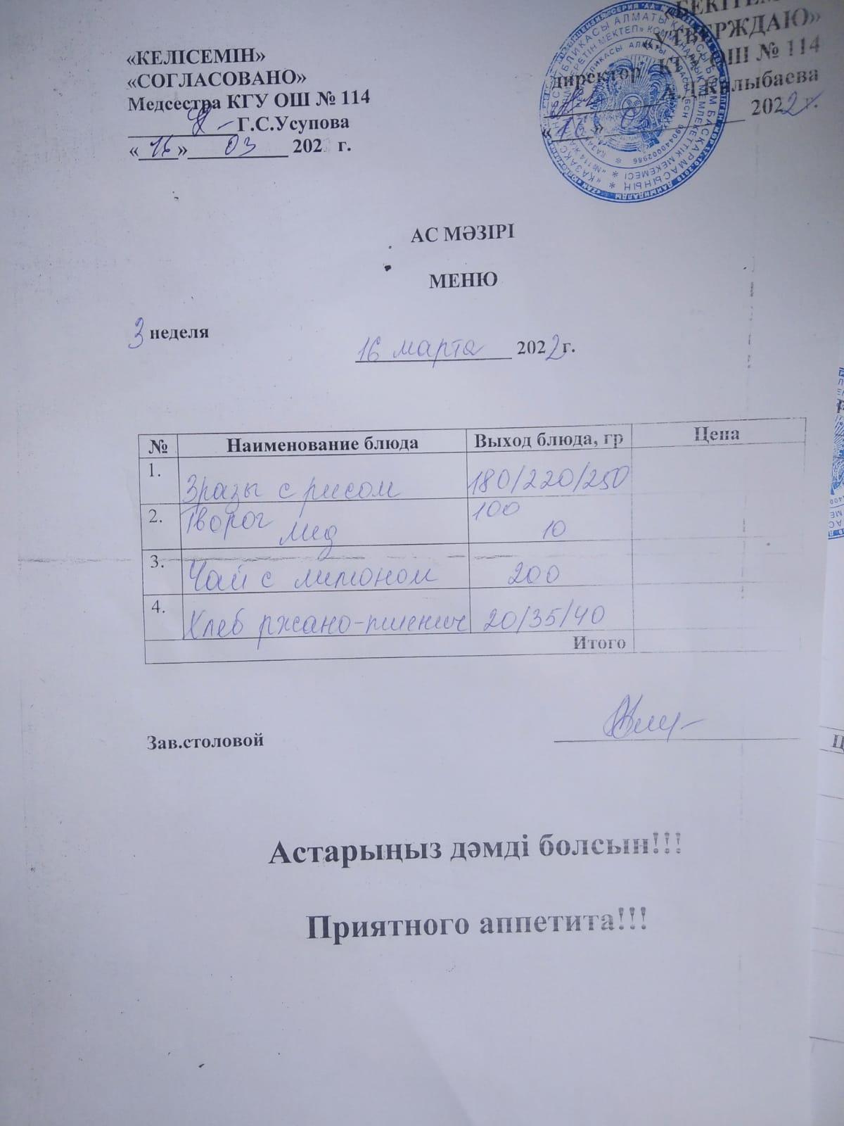 Ас мәзірі 2023-2024ж
