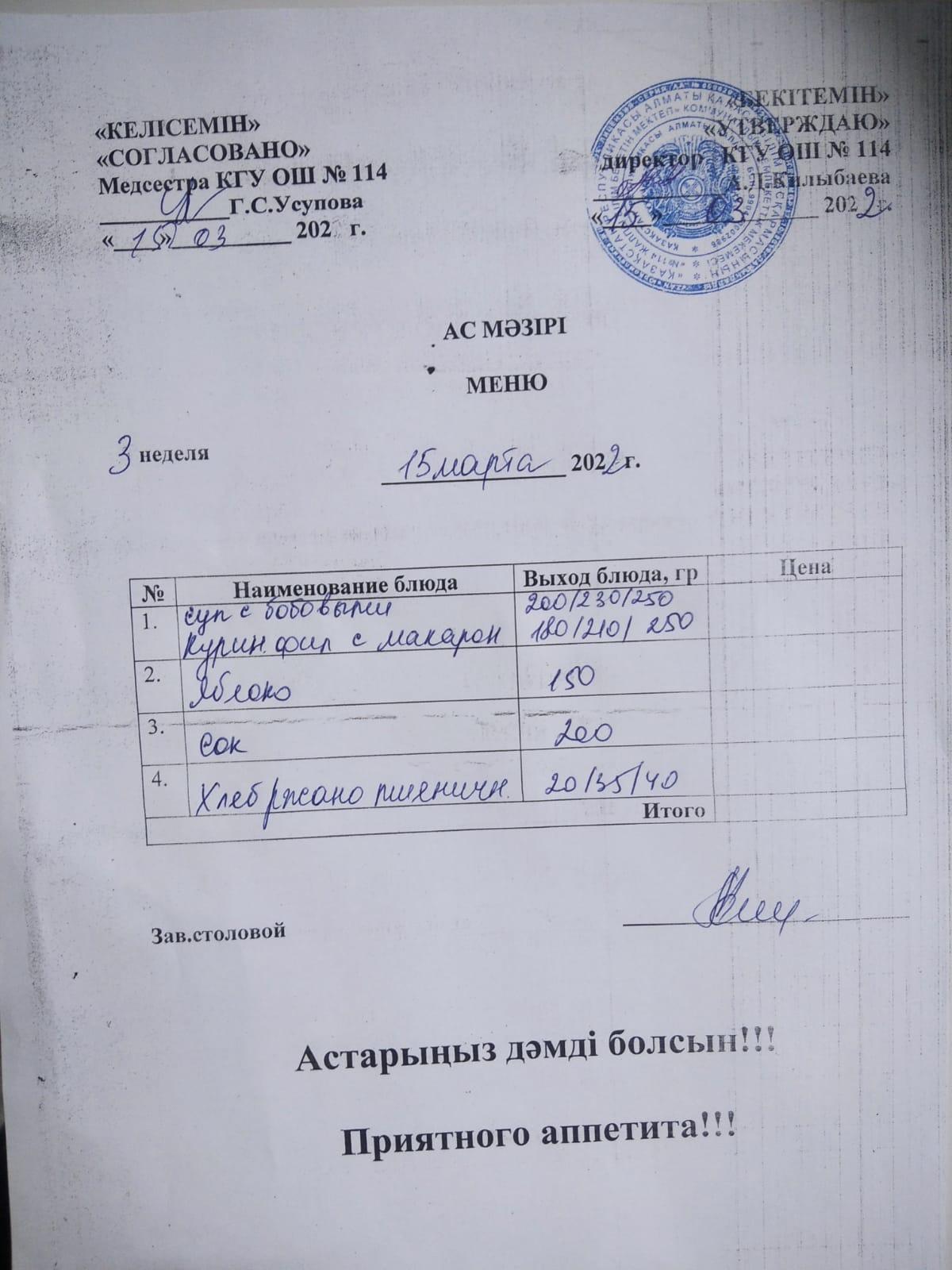 Ас мәзірі 2023-2024ж