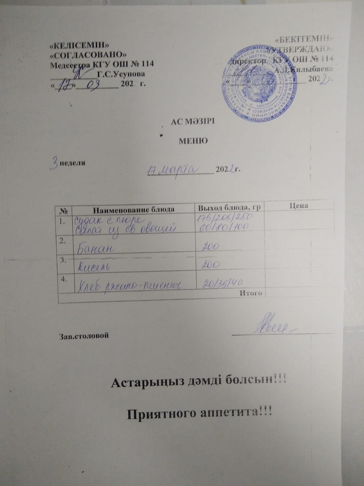 Тамақтандыруды ұйымдастыру - 2021ж.
