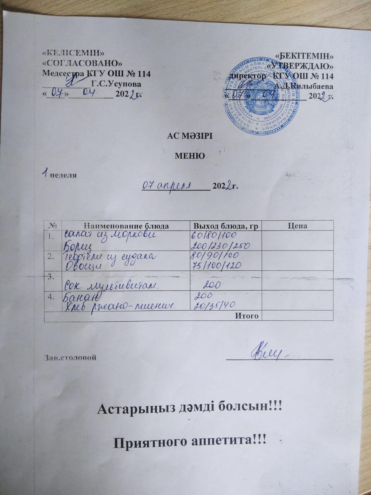 Тамақтандыру бойынша келісім шарт 2022ж.