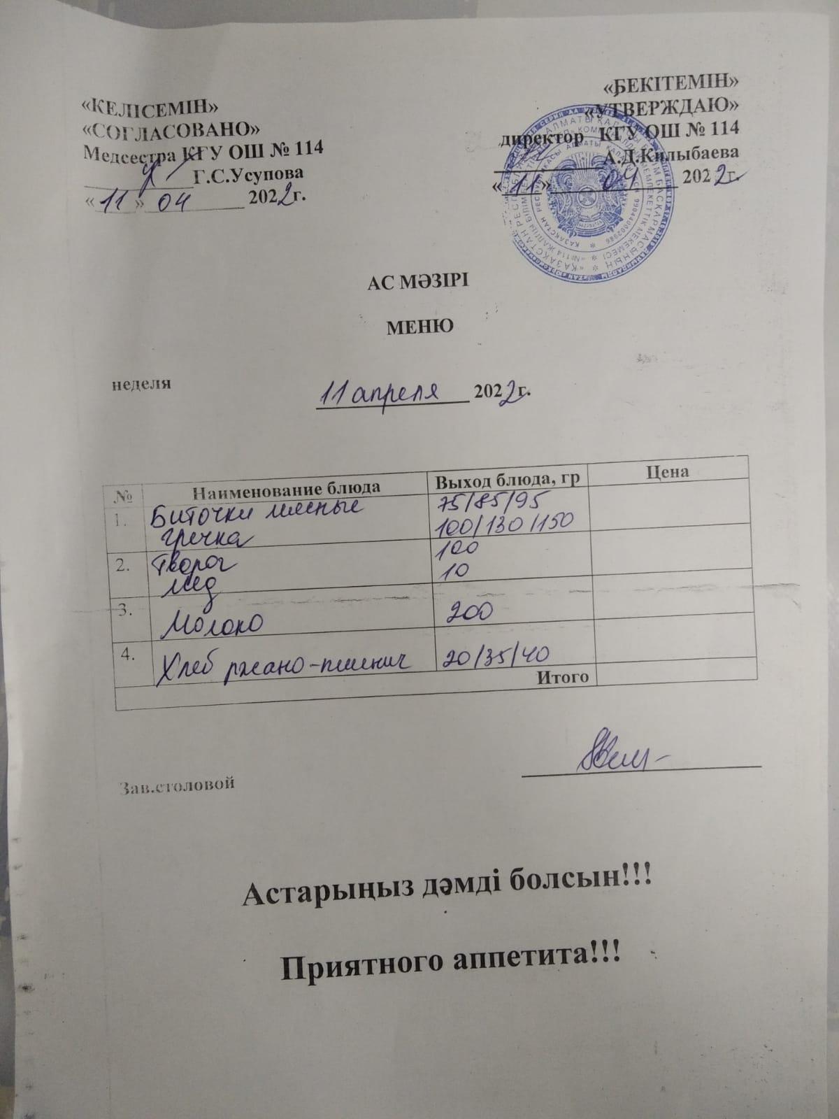 Тамақтандыру бойынша келісім шарт 2022ж.