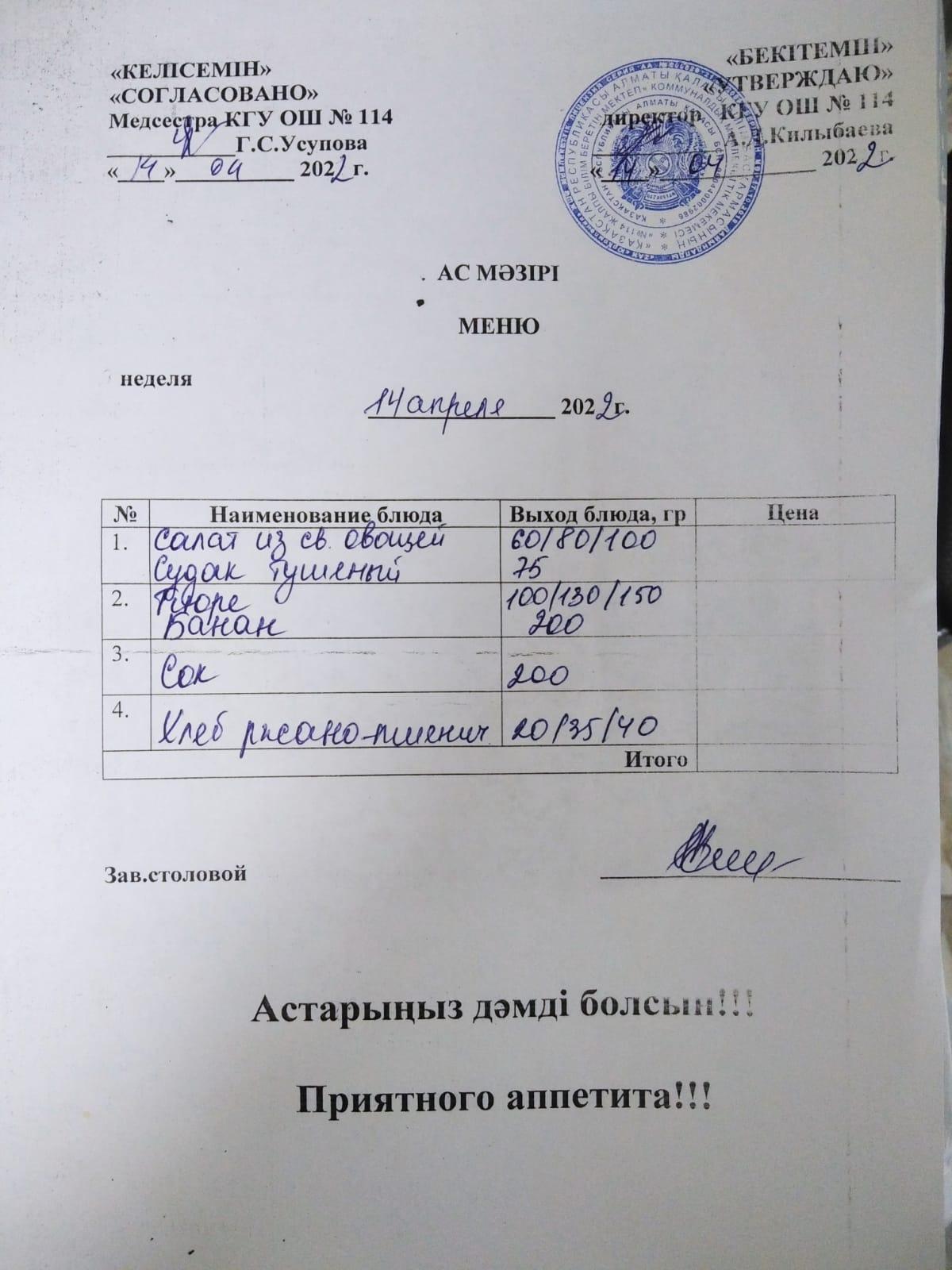 Тамақтандырудың сапалық мониторингі 2023жыл