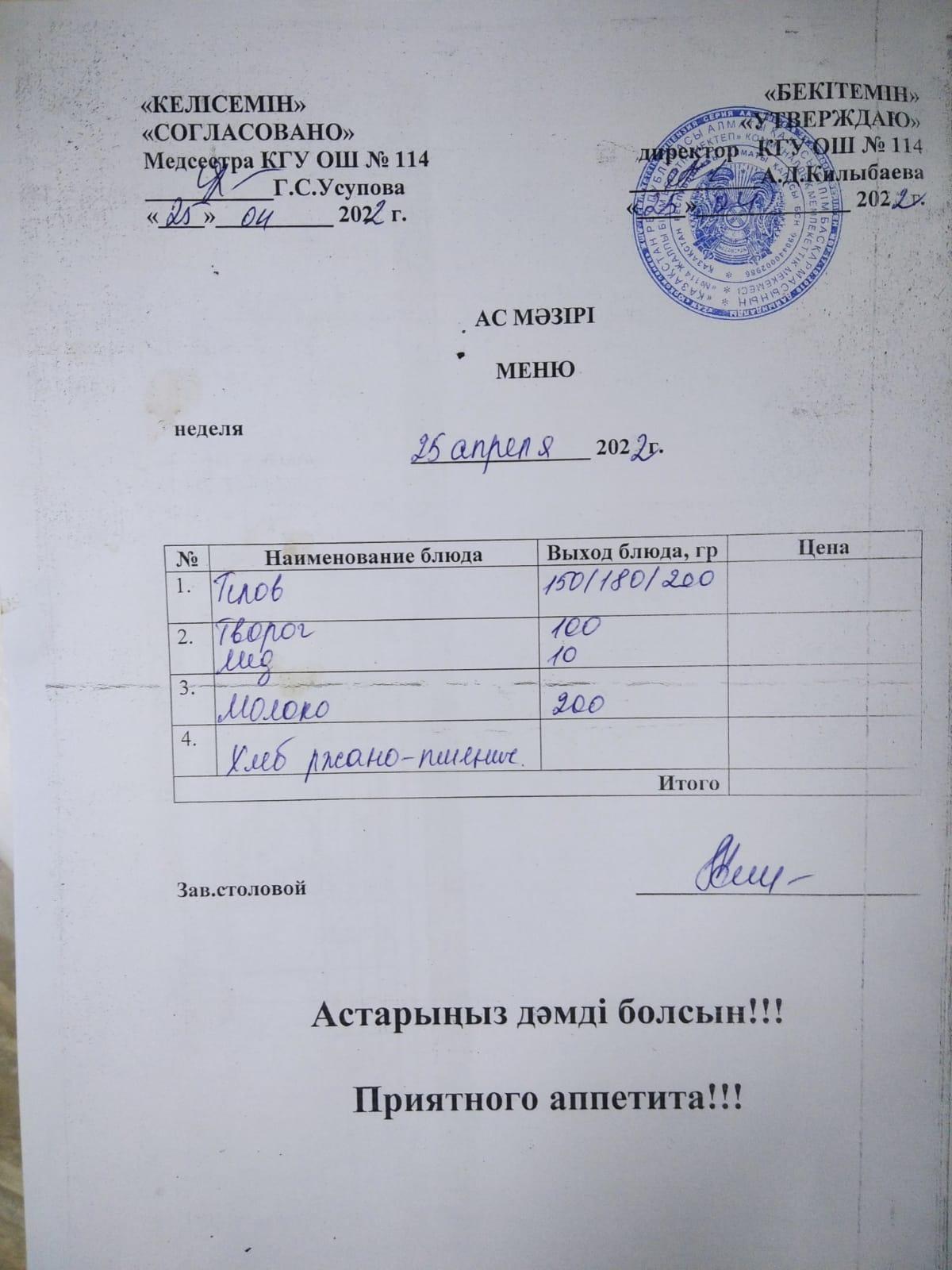 Тамақтануды ұйымдастыру бойынша жұмыс жоспары-2025