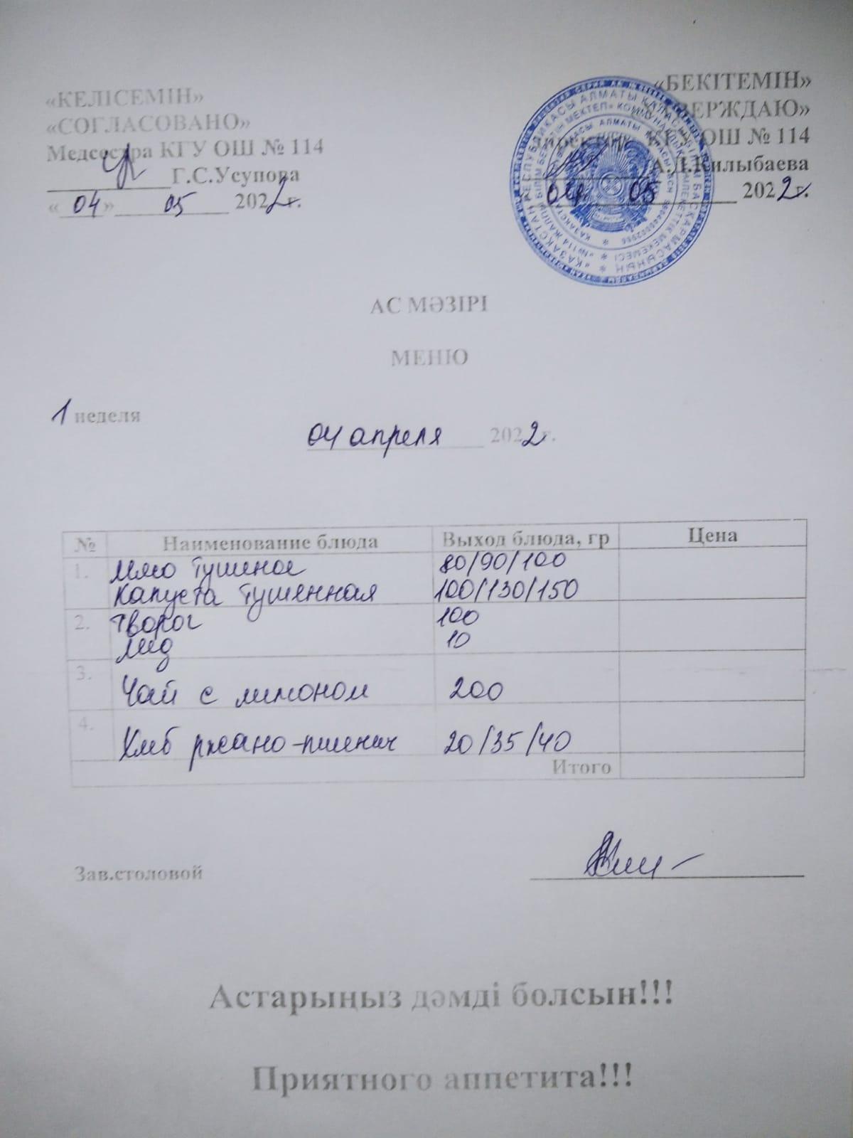 Тамақтандырудың сапалық мониторингі 2023-2024жыл