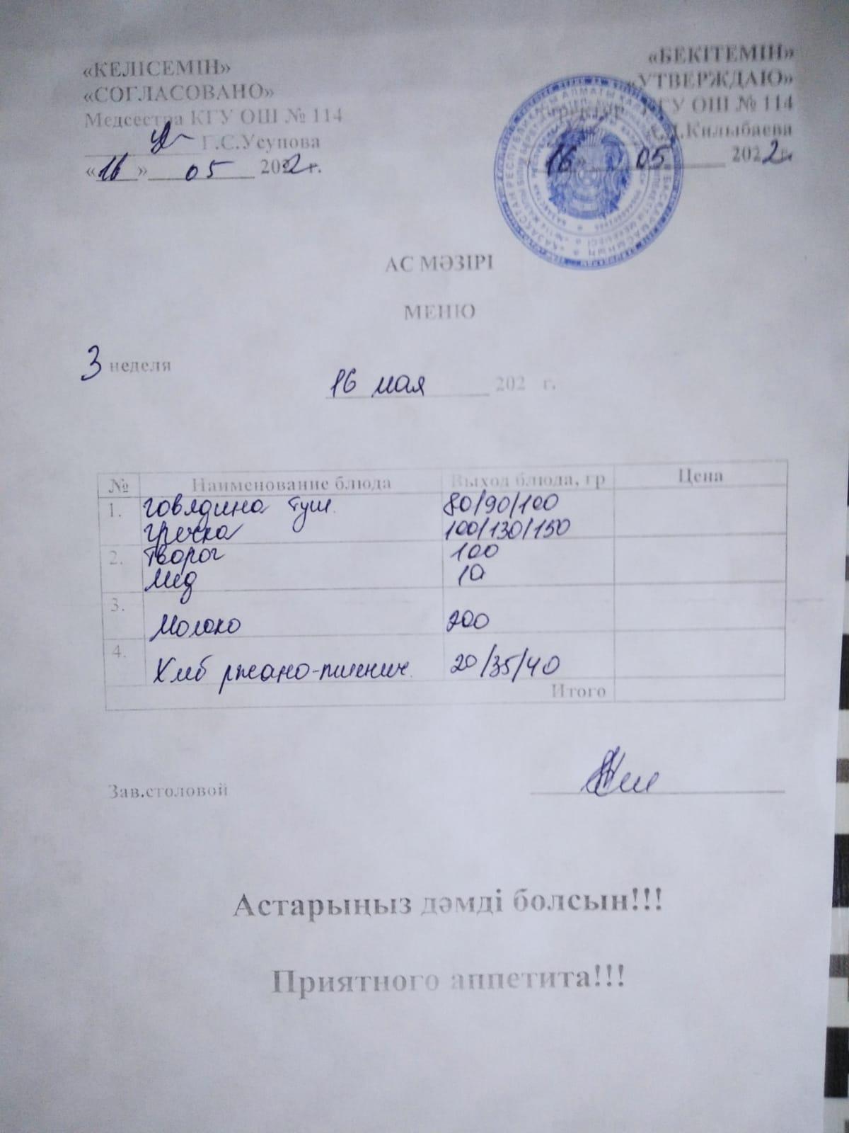 Тамақтандыру бойынша келісім шарт 2022ж.