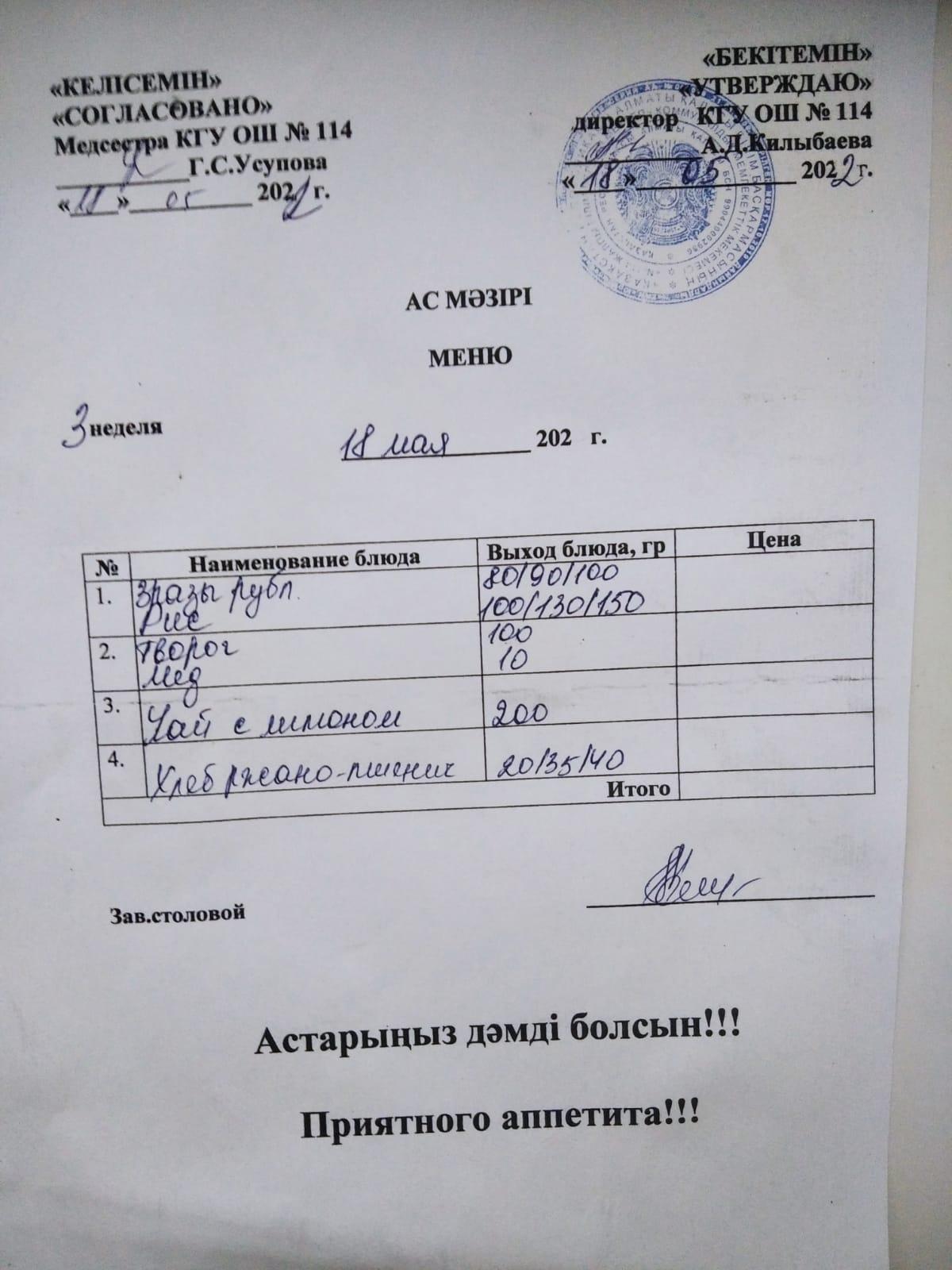 Тамақтандыруды ұйымдастыру - 2021ж.