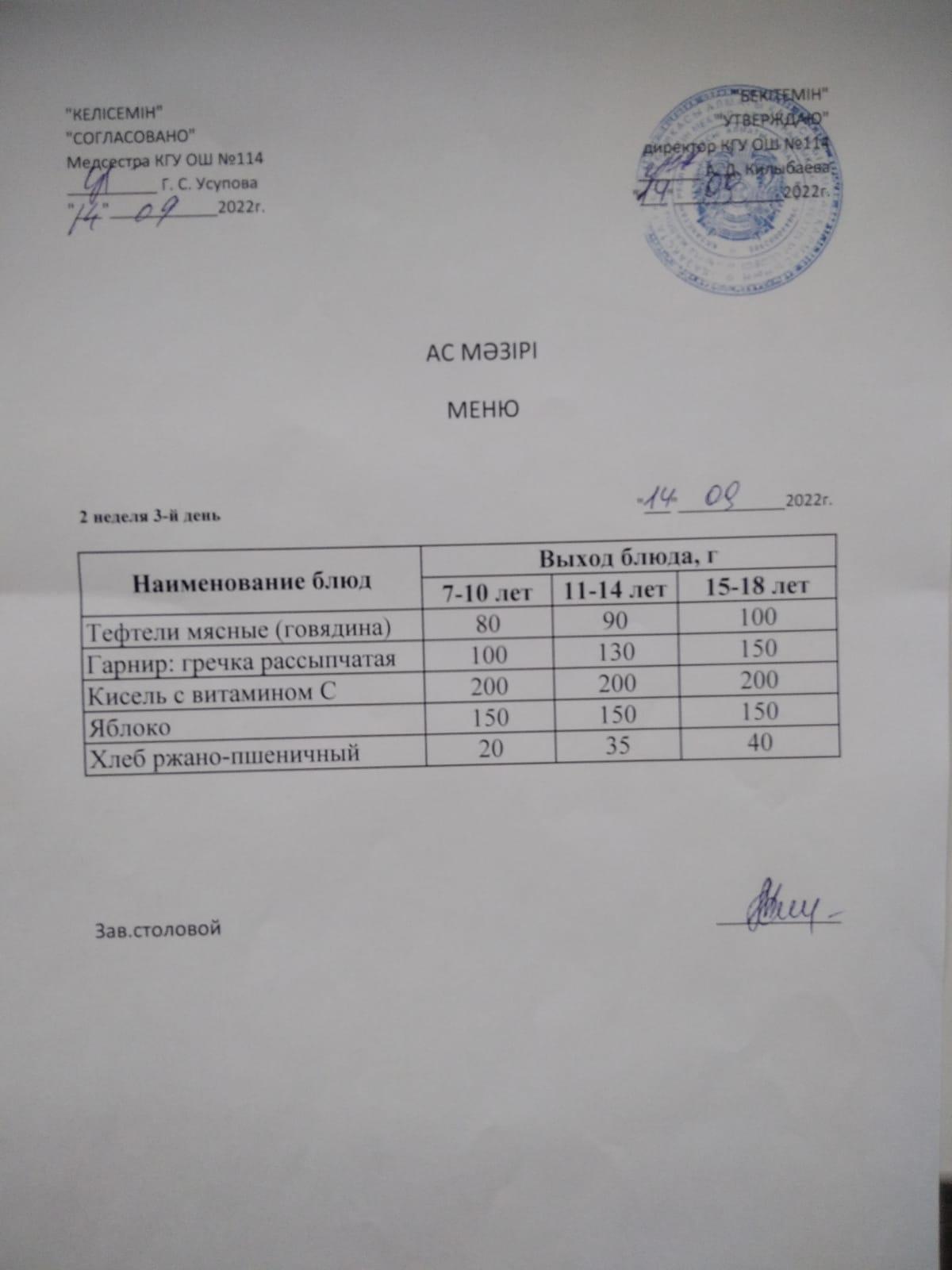 Меню 14.09.2022