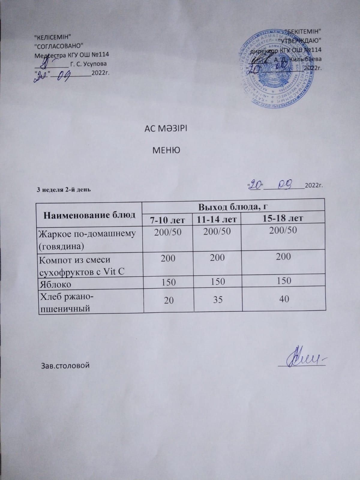 Ас мәзірі 2023-2024ж