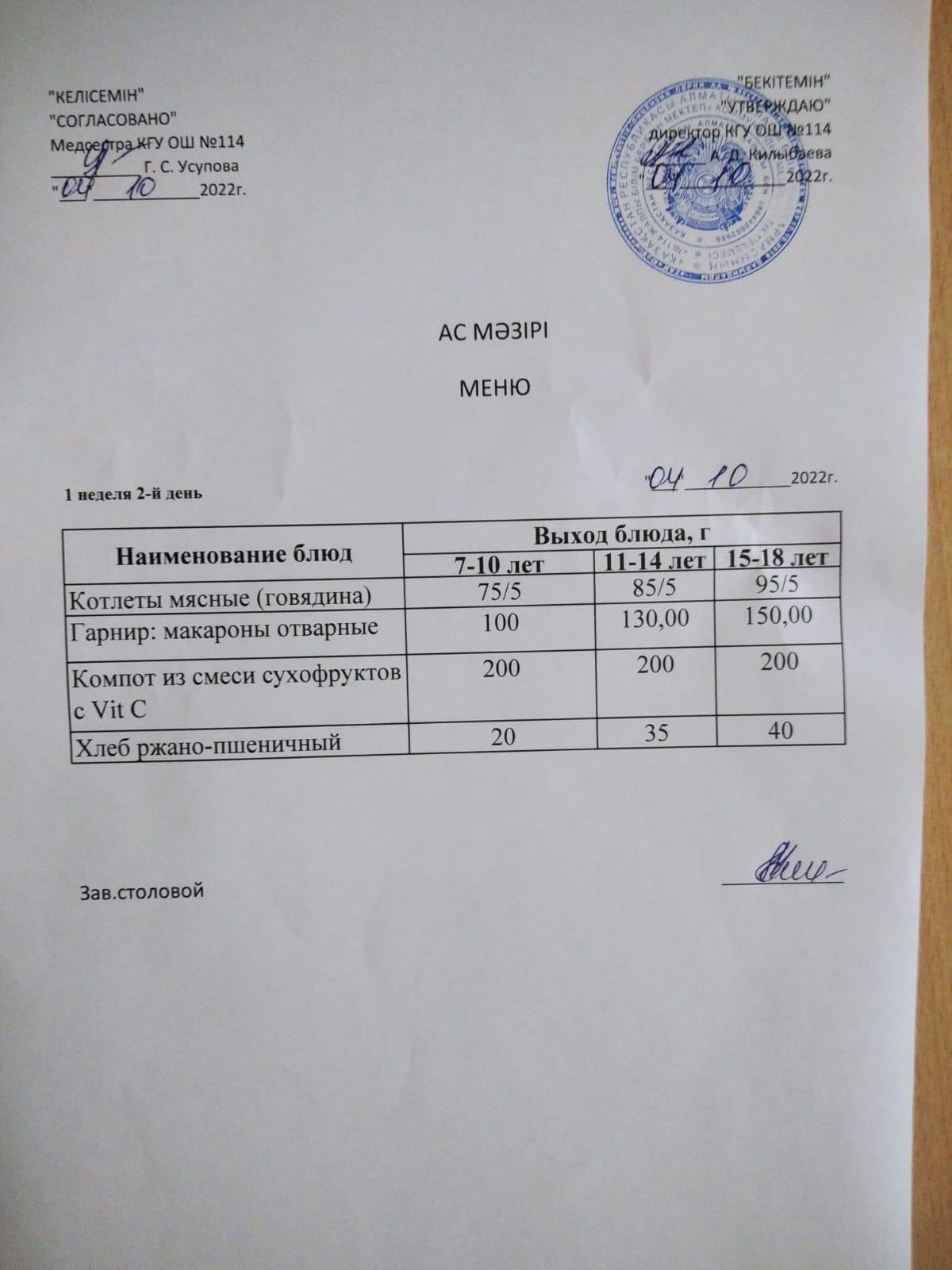 Тамақтандыру бойынша келісім шарт 2022ж.