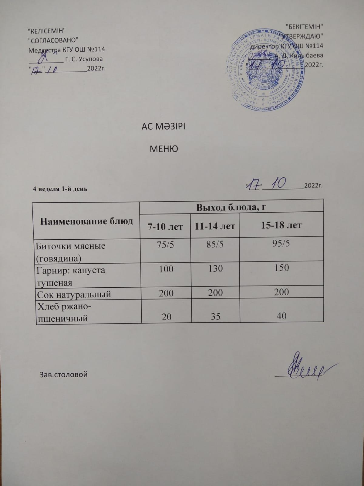 Тамақтану бойынша келісім шарт- 2023-2024ж
