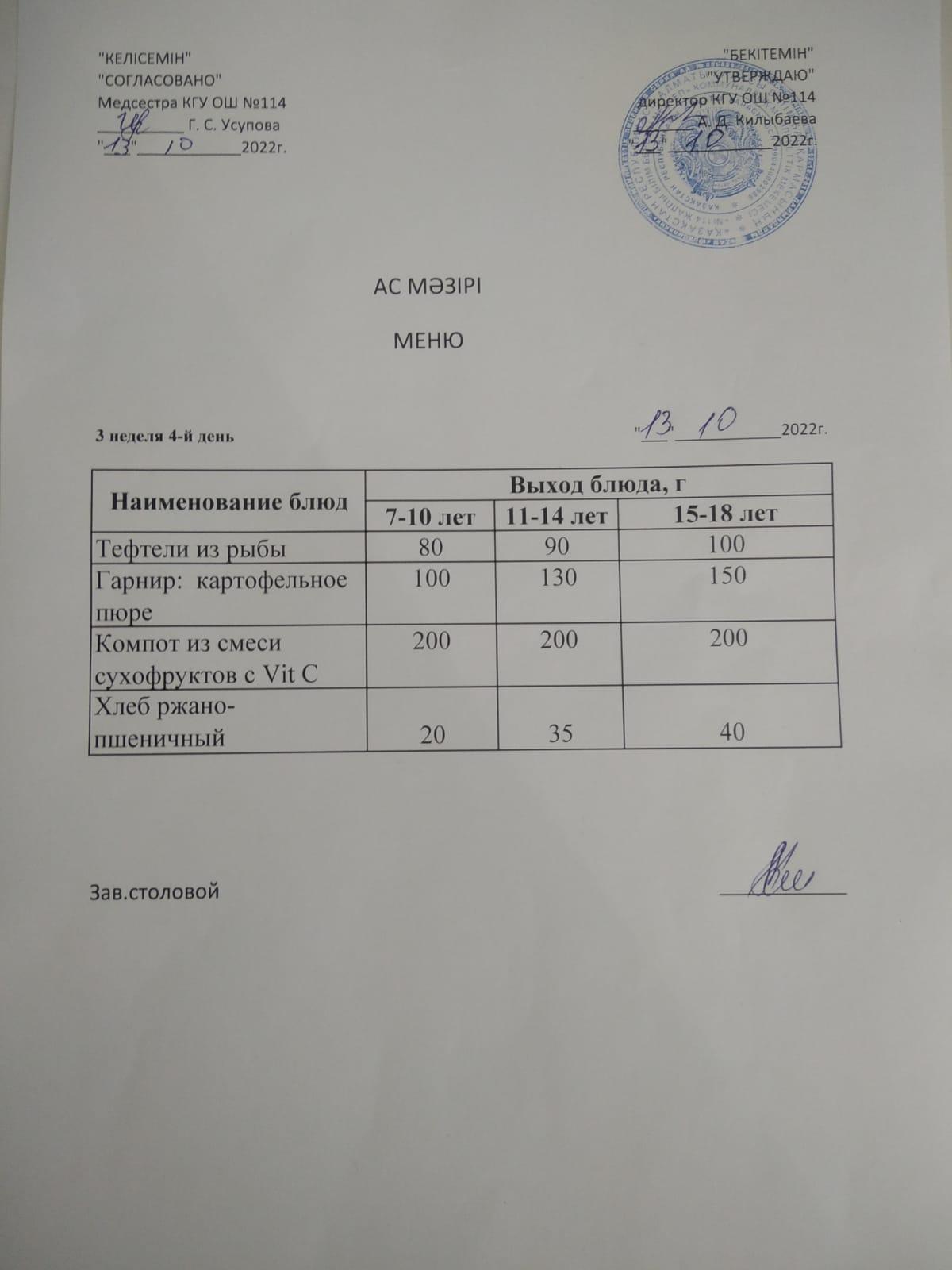 Тамақтану бойынша келісім шарт- 2023-2024ж
