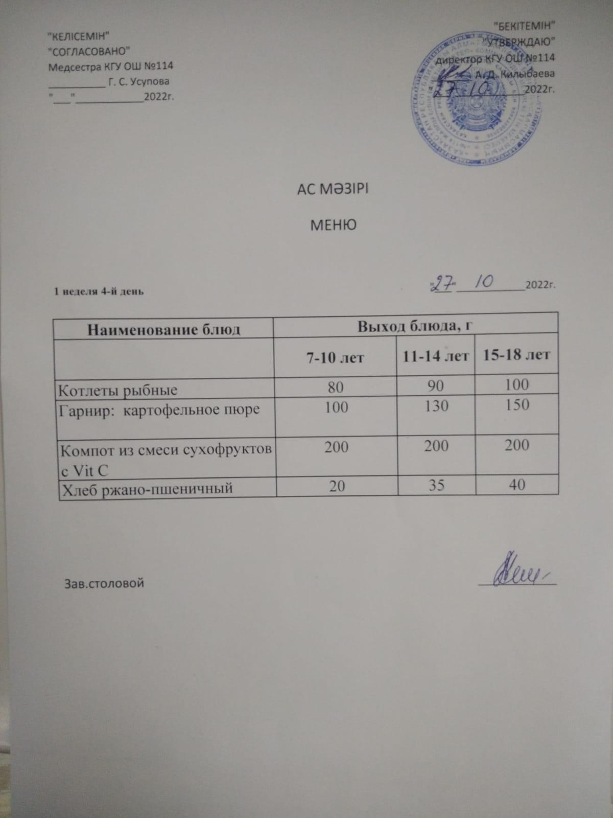Тамақтану бойынша келісім шарт- 2023-2024ж