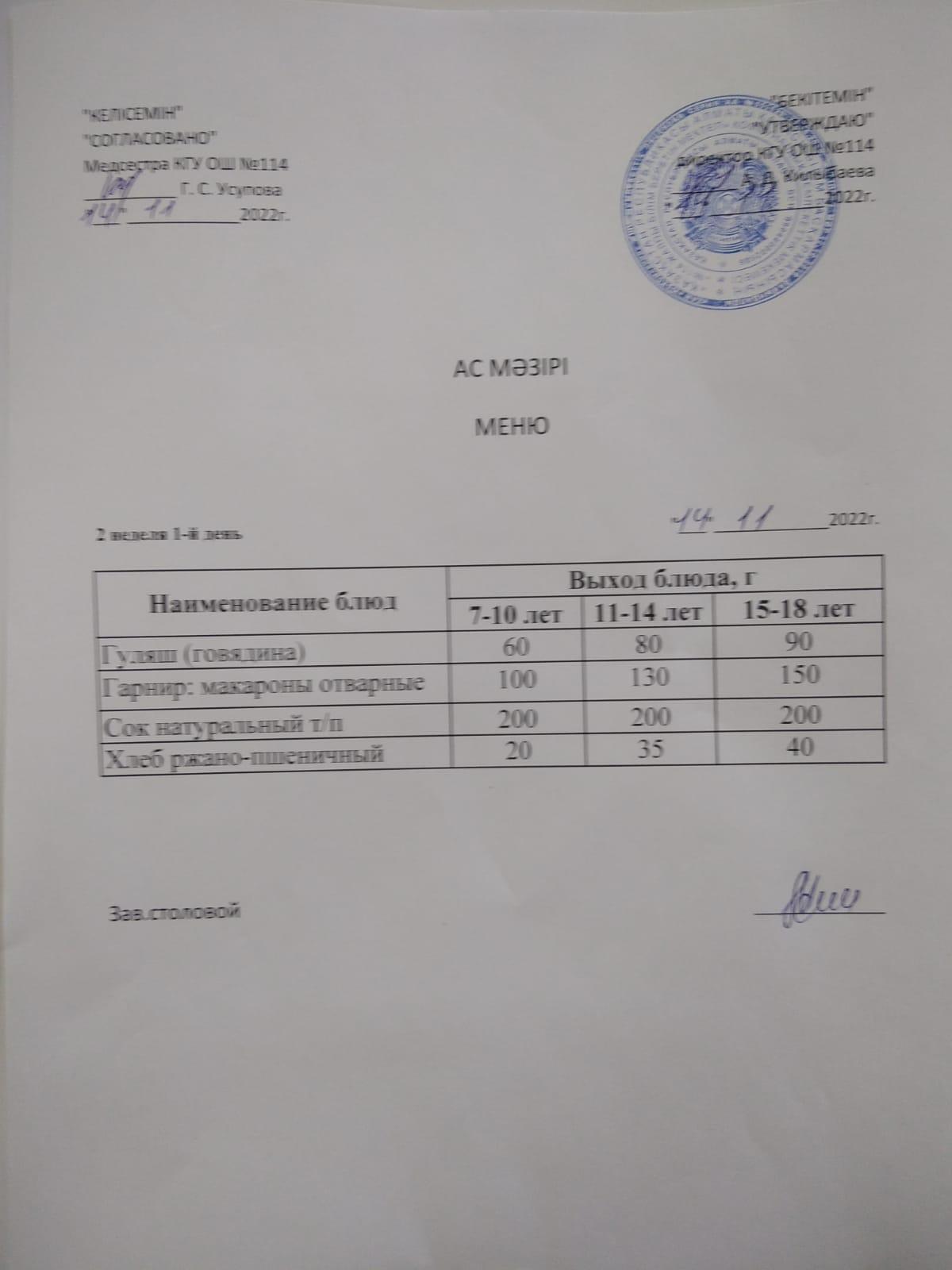 Тамақтандыру бойынша келісім шарт 2022ж.