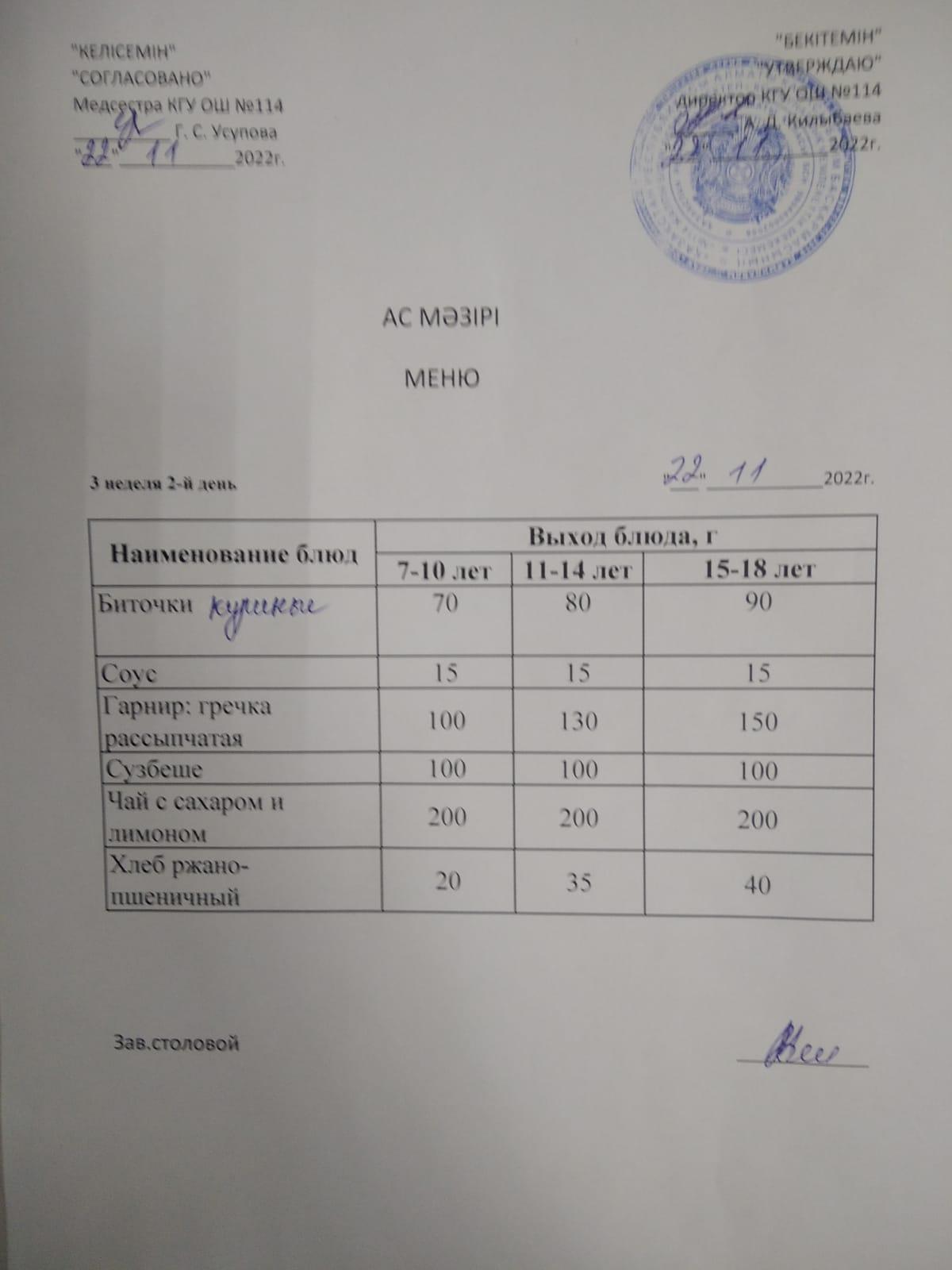Меню 22.11.2022