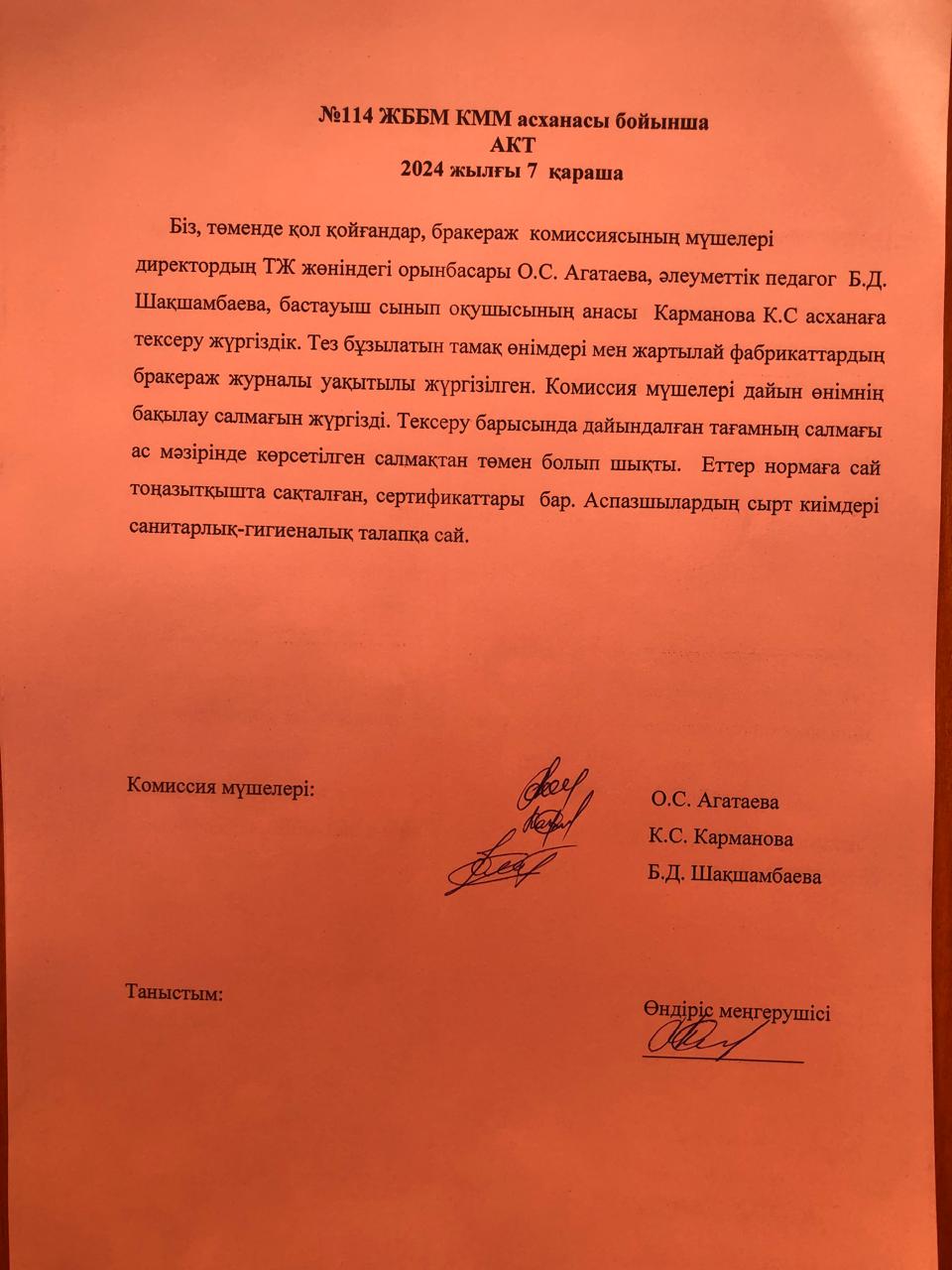 Асхананы тексеру актісі