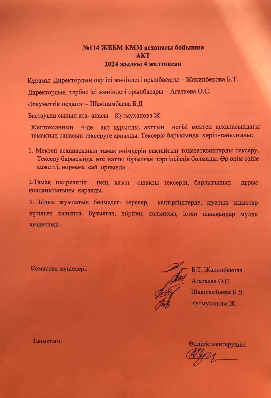 Асхананы тексеру актісі