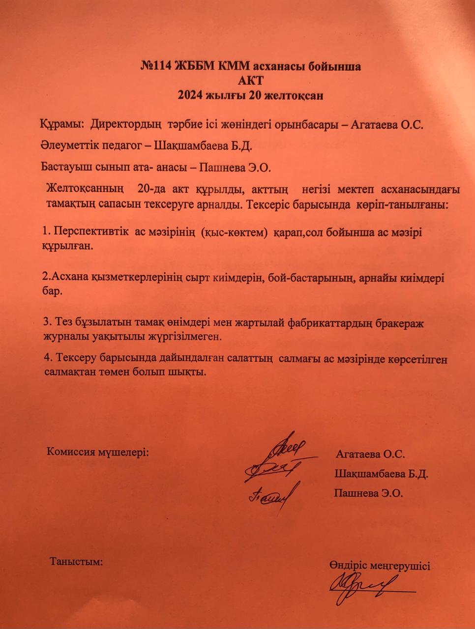 Тамақтандырудың сапалық мониторингі 2023-2024жыл