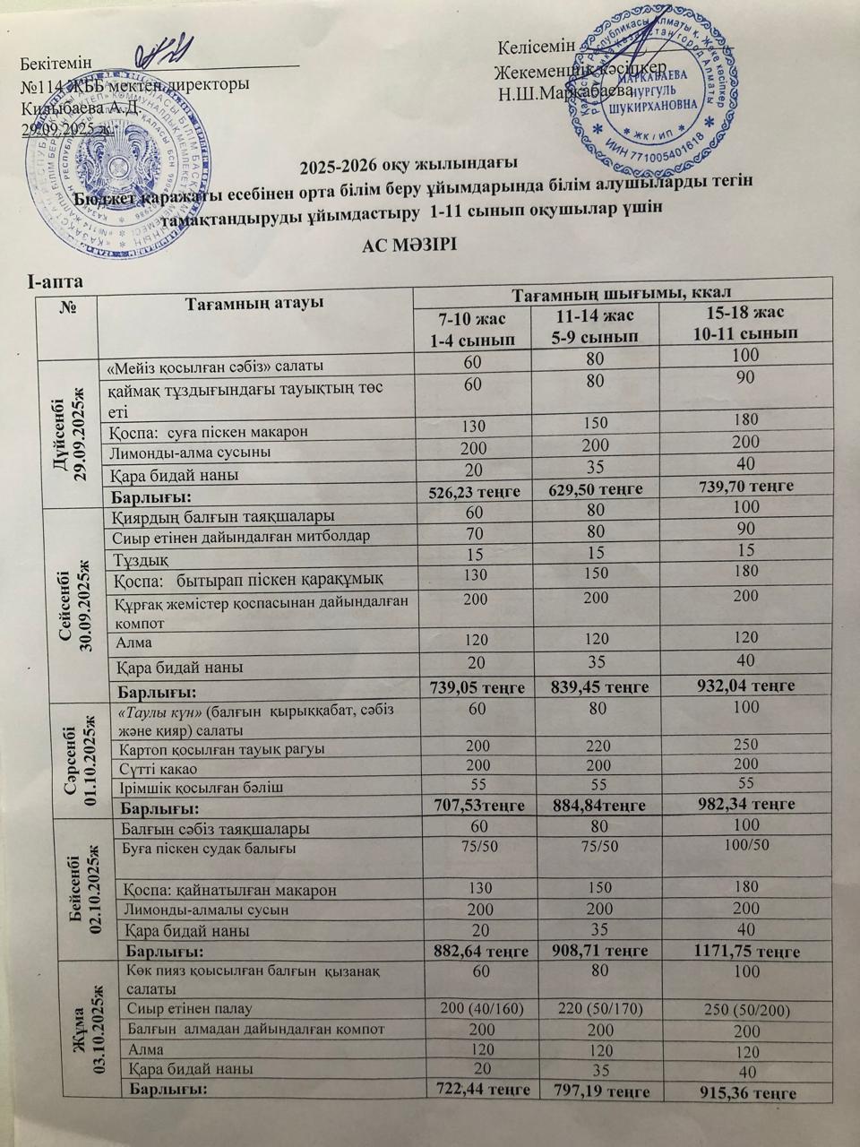 Ас мәзірі 29.09 - 03.10.2025 ж