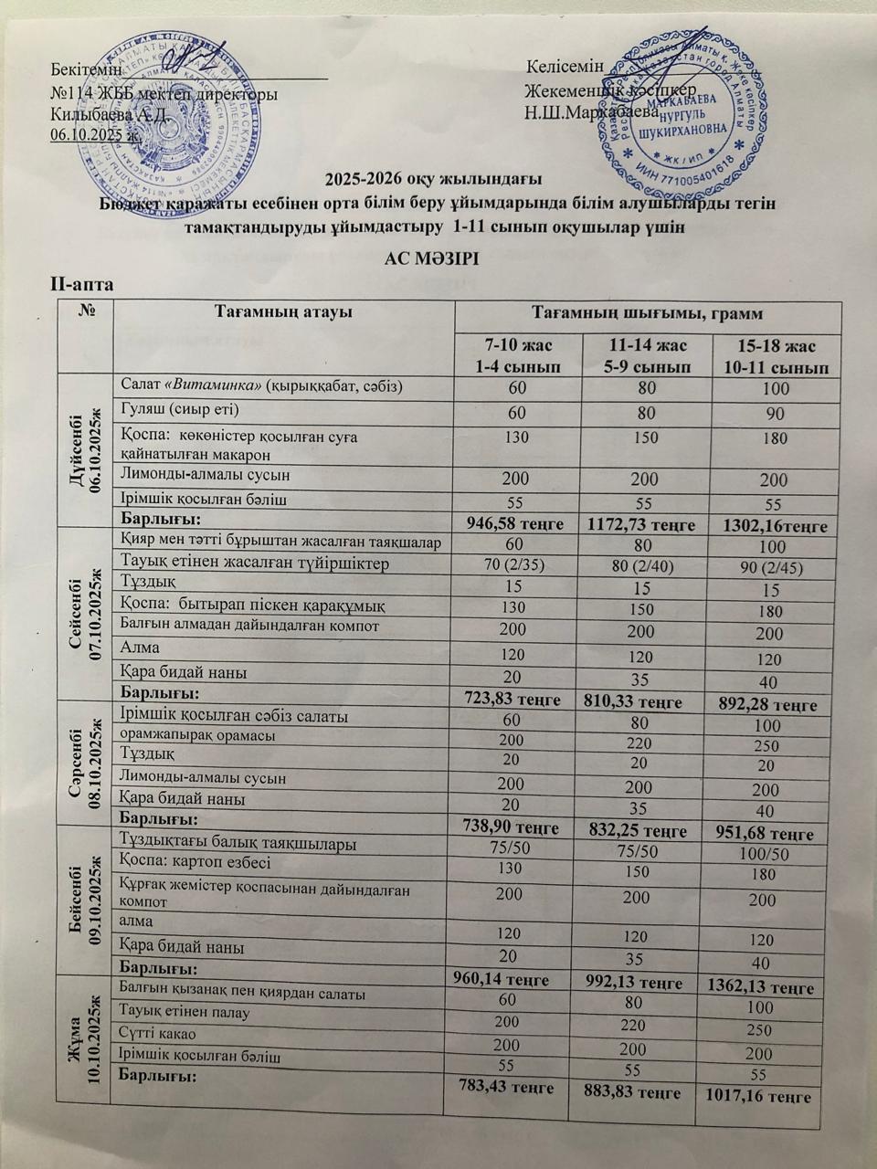 » Ас мәзірі 06.10 - 10.10.2025 ж